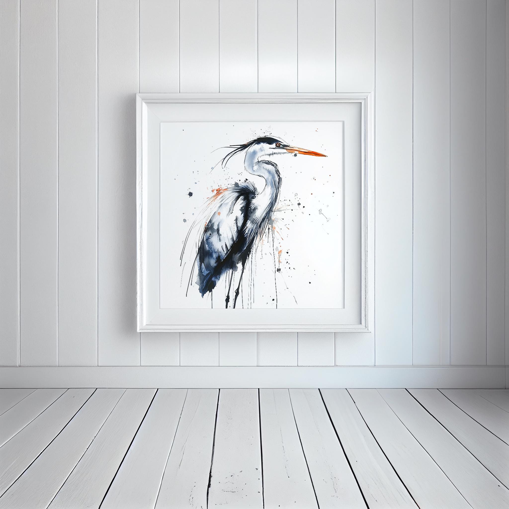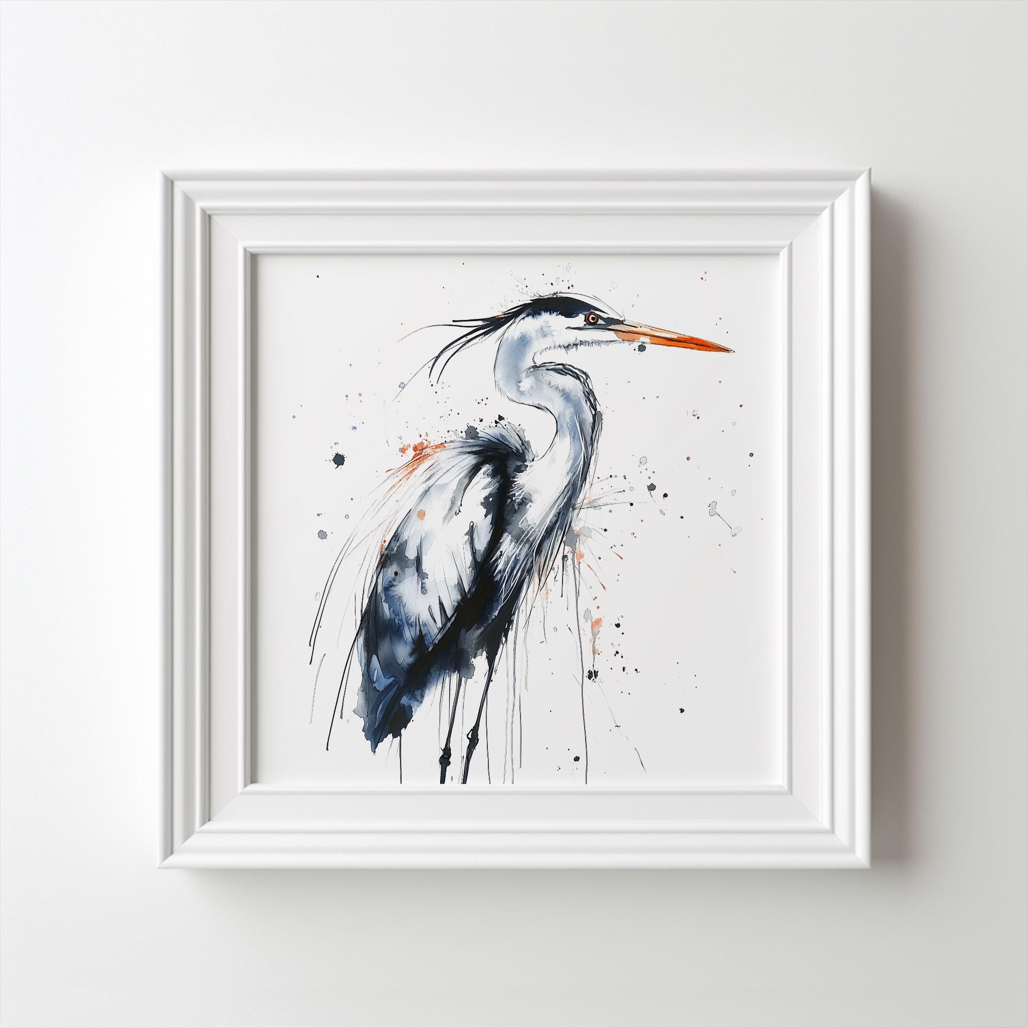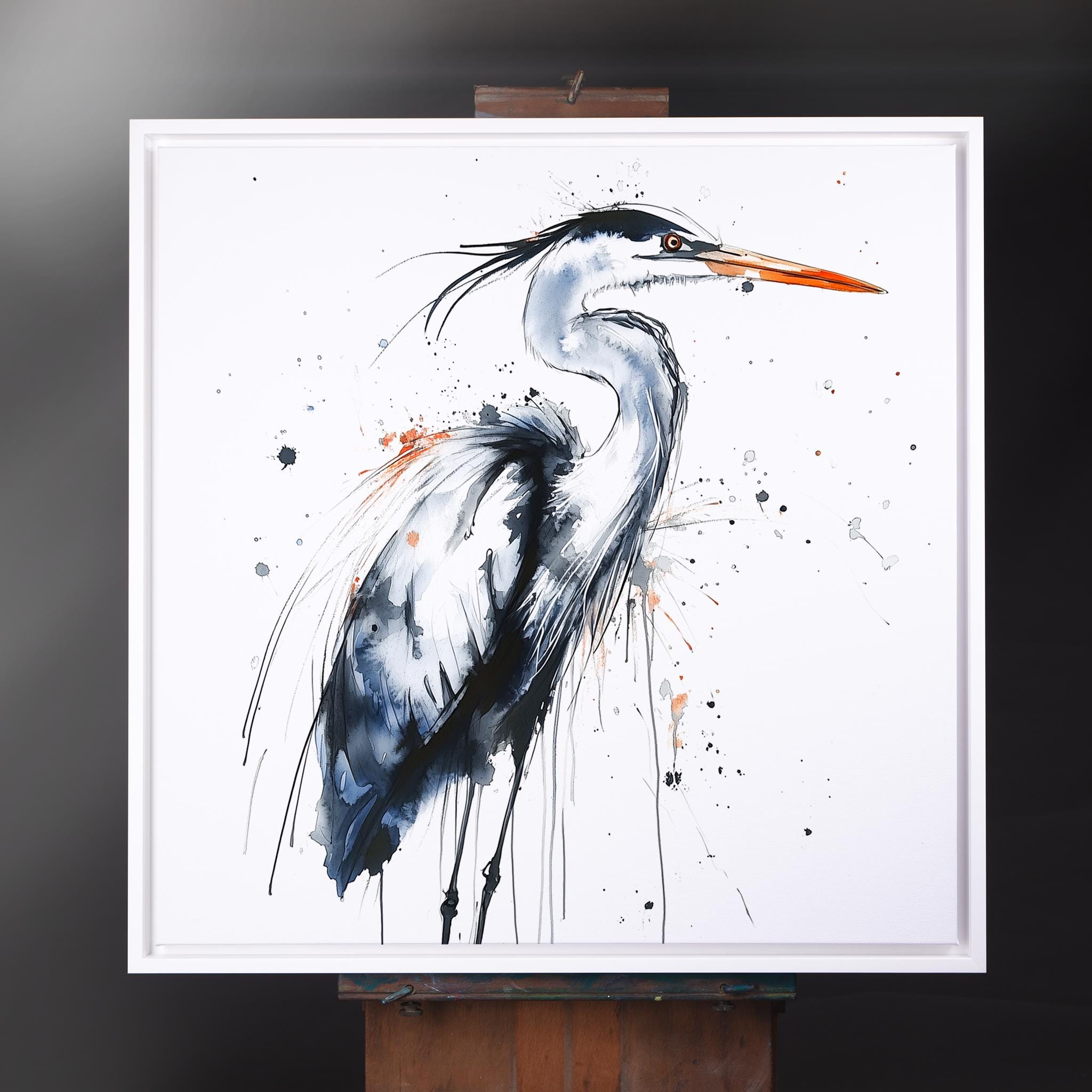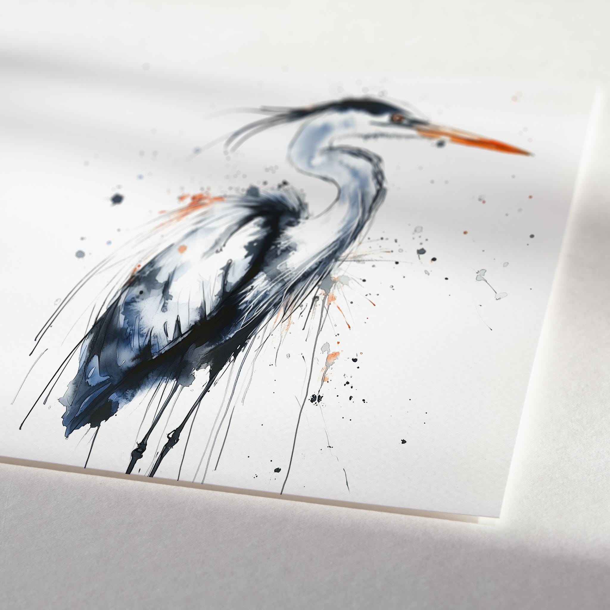 Heron Painting - Hand signed contemporary Heron print on watercolour paper. Bold and expressive with lots of character, my paintings of british birds are a firm favourite amongst nature lovers and bird watchers alike. My bird paintings have been published by the National Trust several times as gift cards and are for sale in cards shops nationwide through Museums and Galleries.