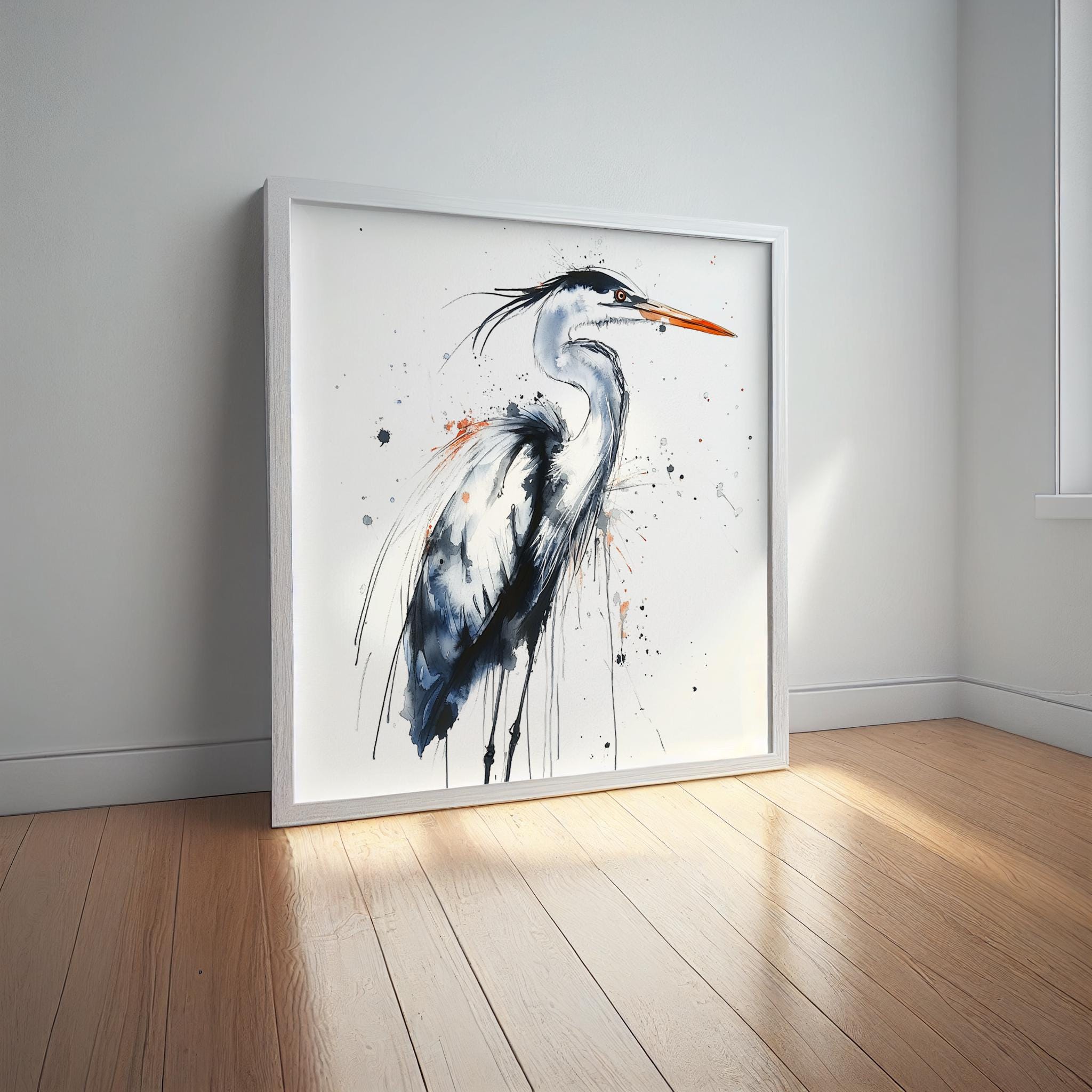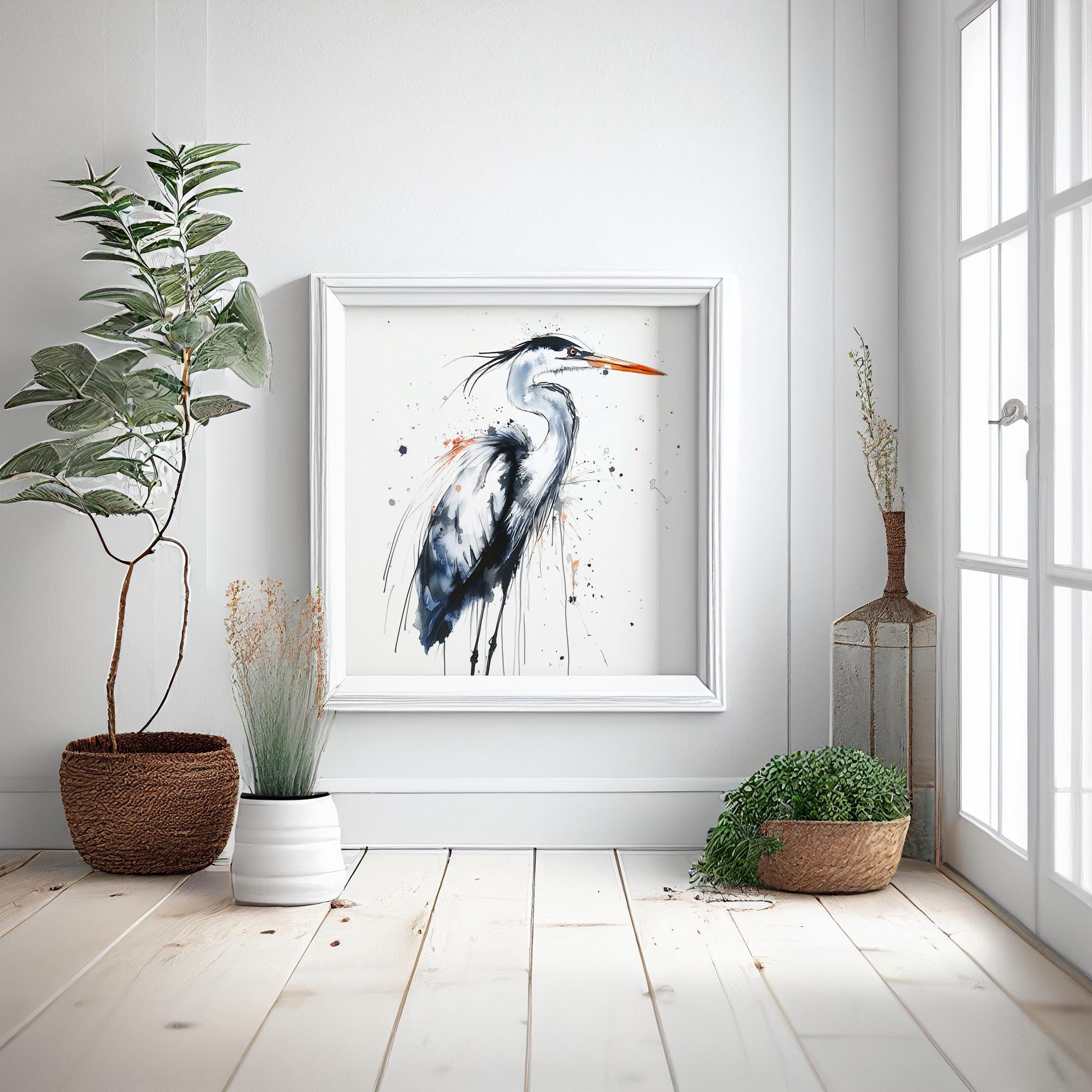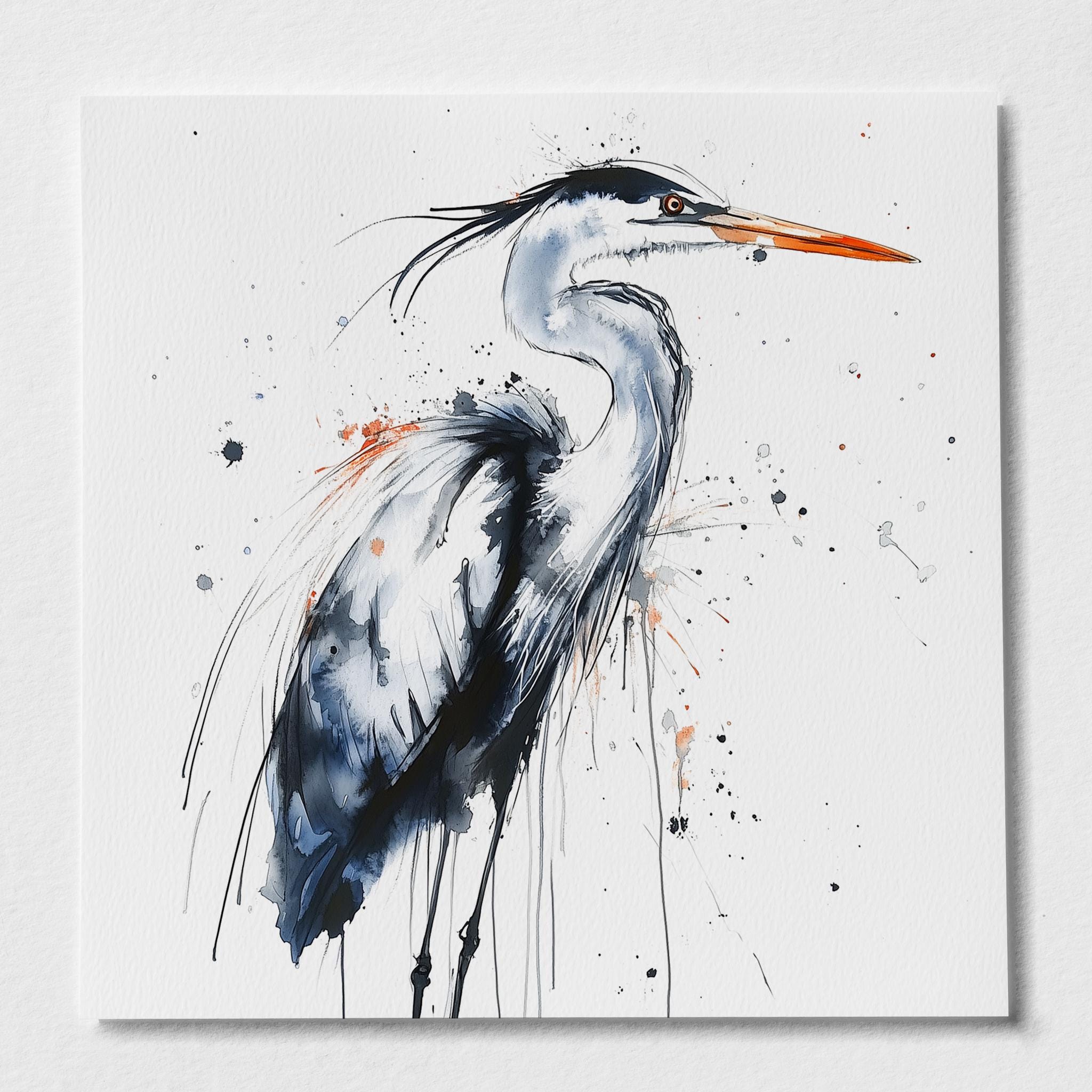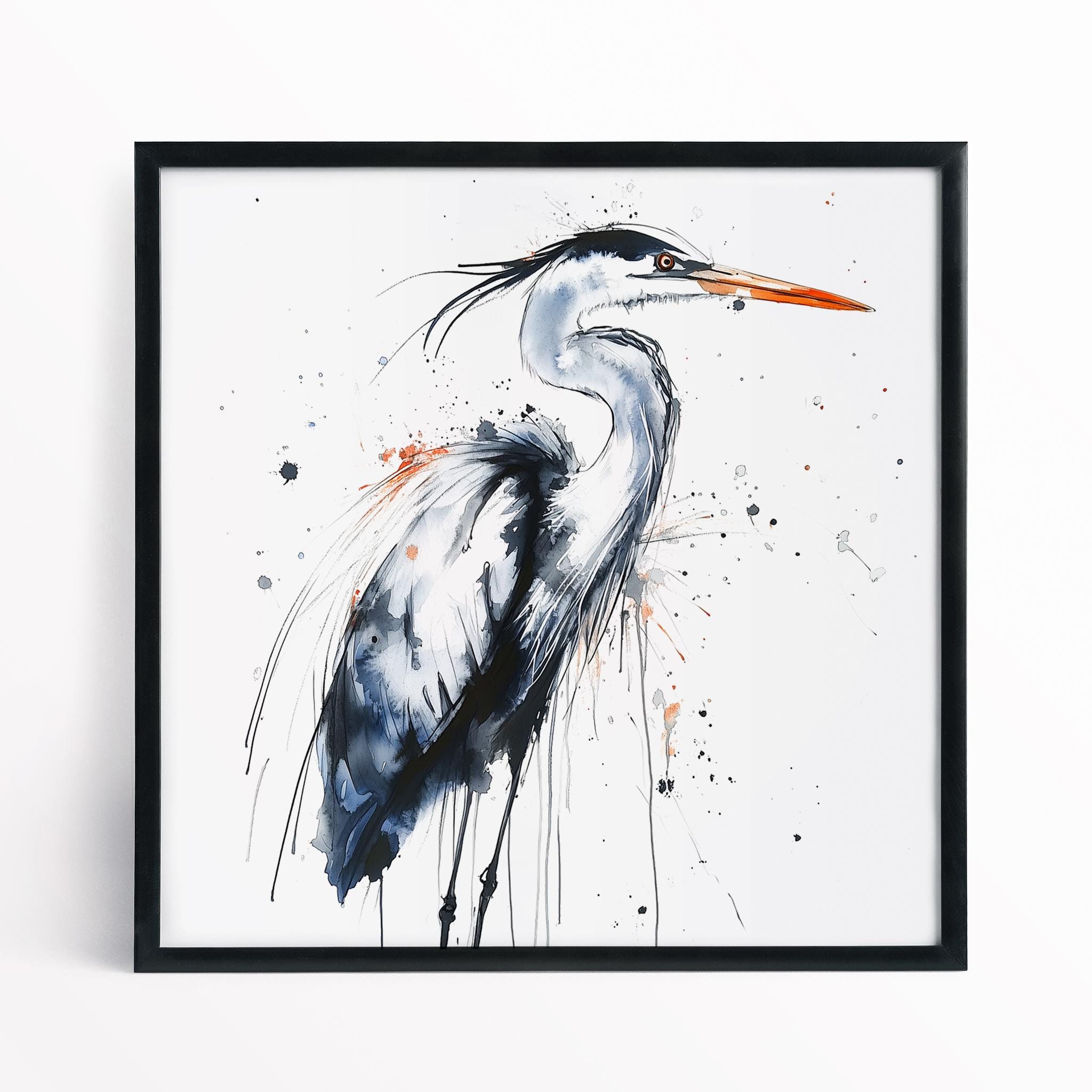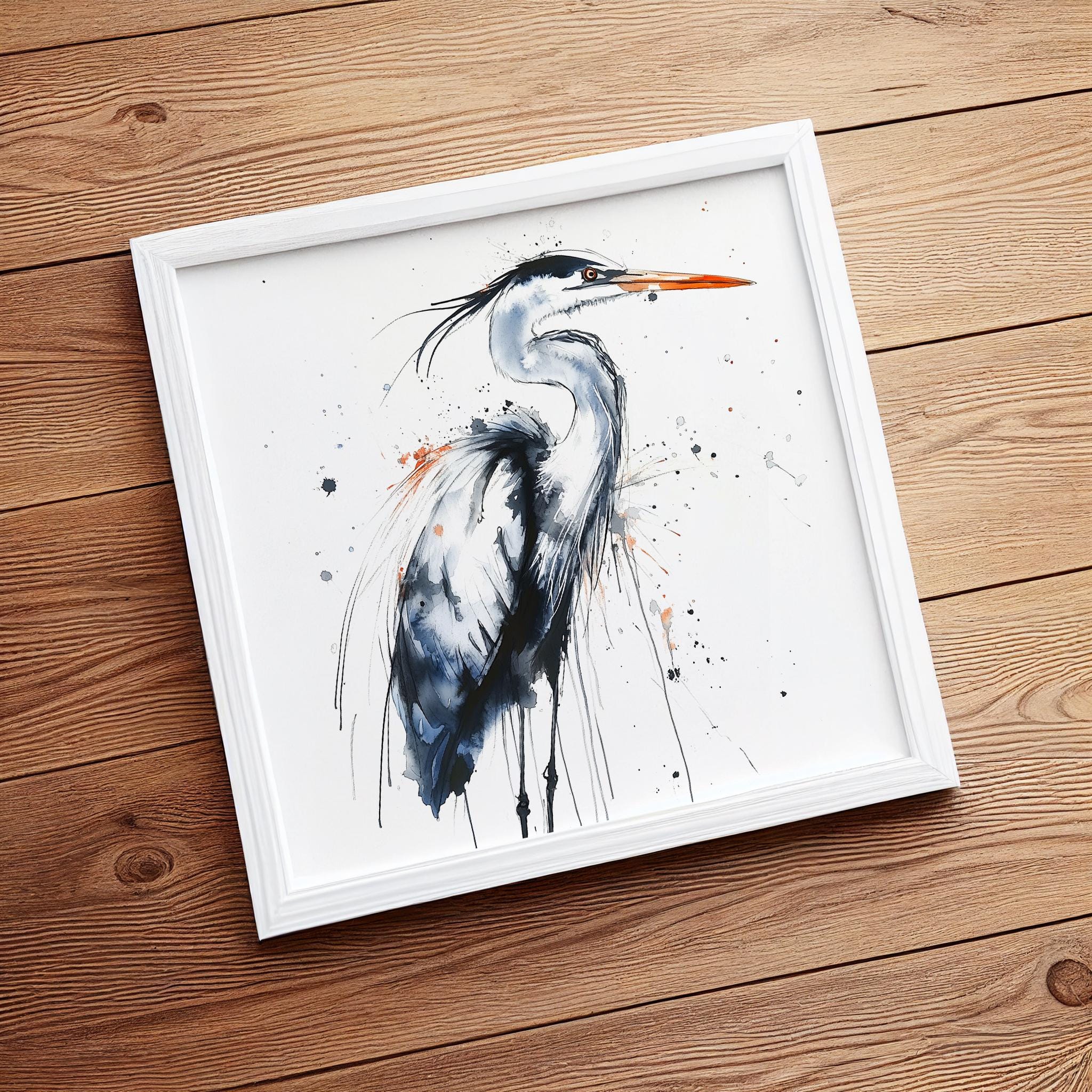 Heron Painting - Hand signed contemporary Heron print on watercolour paper. Bold and expressive with lots of character, my paintings of british birds are a firm favourite amongst nature lovers and bird watchers alike. My bird paintings have been published by the National Trust several times as gift cards and are for sale in cards shops nationwide through Museums and Galleries.