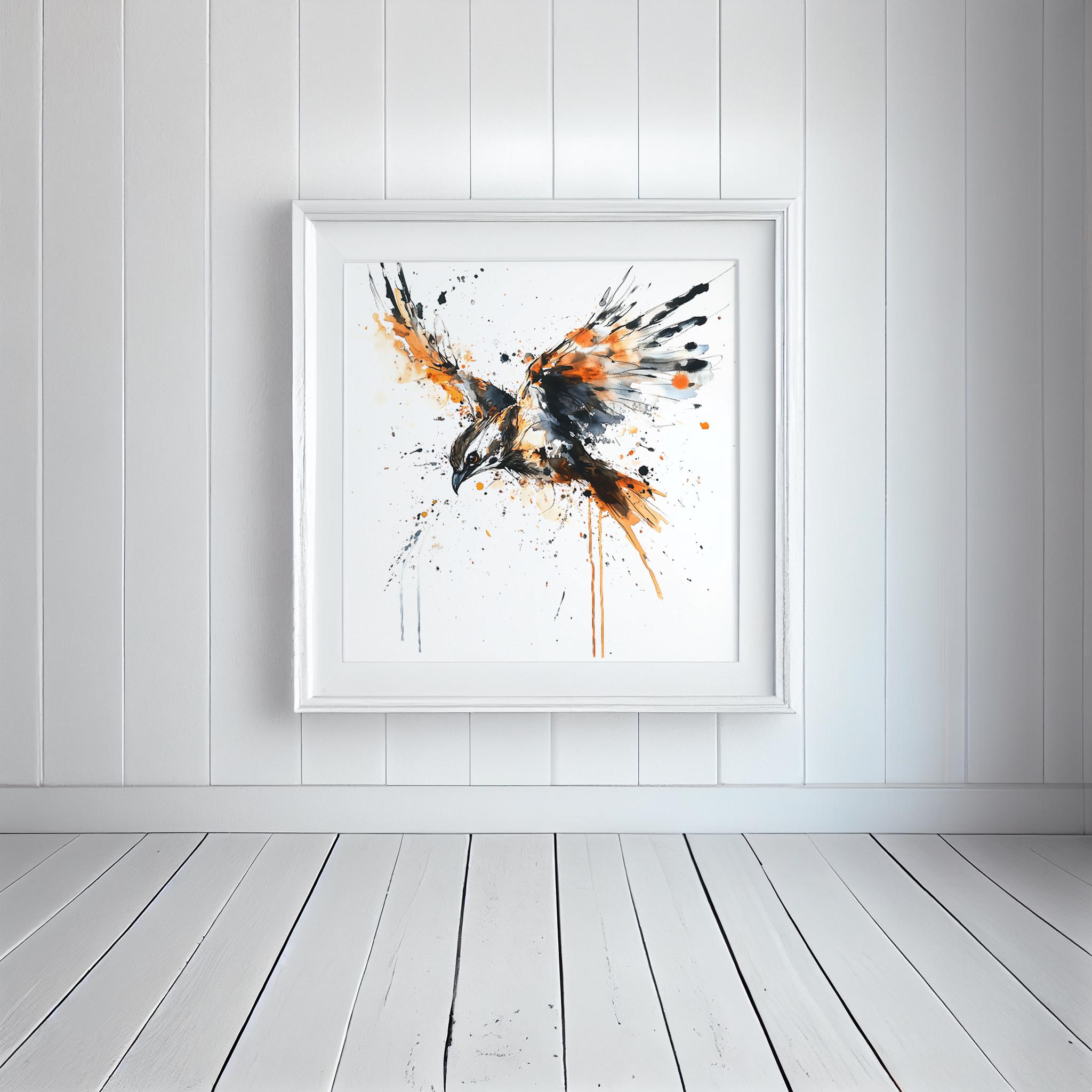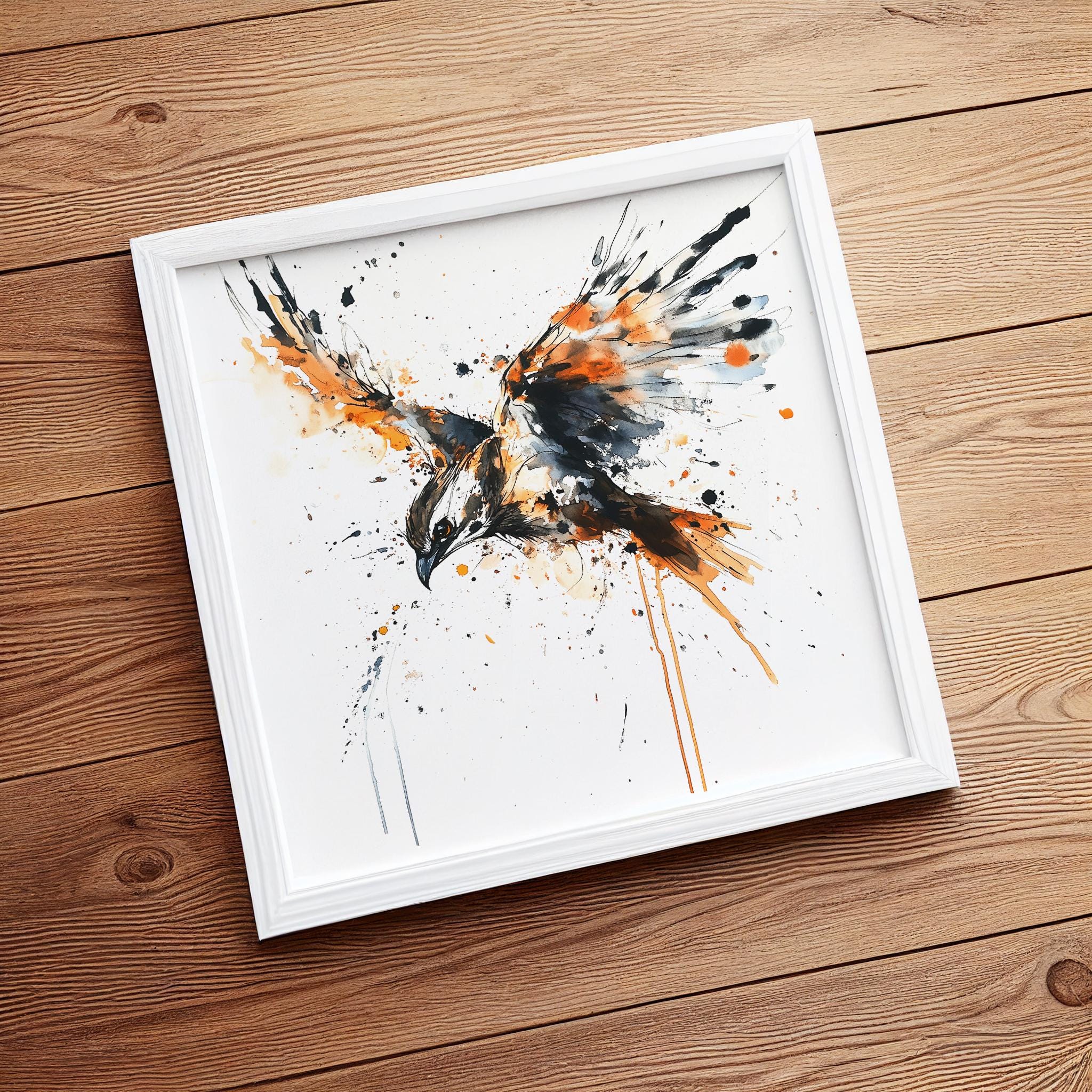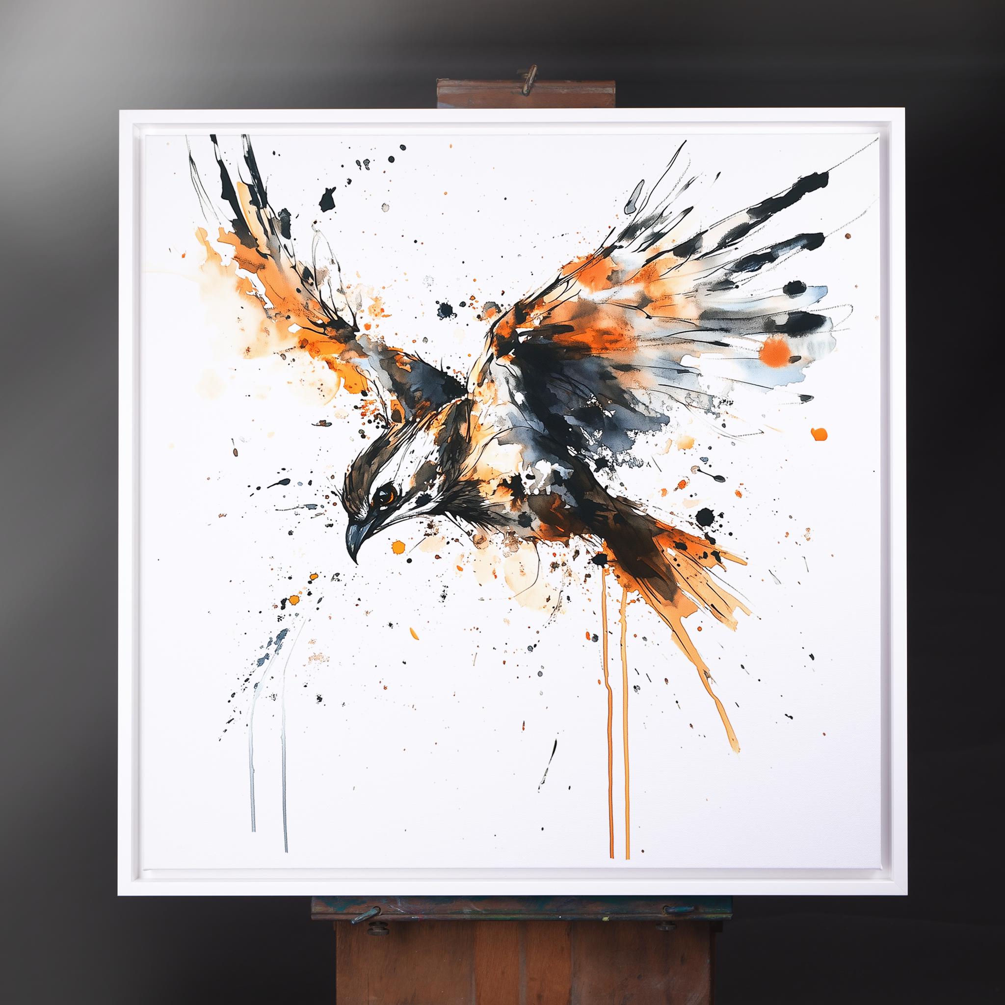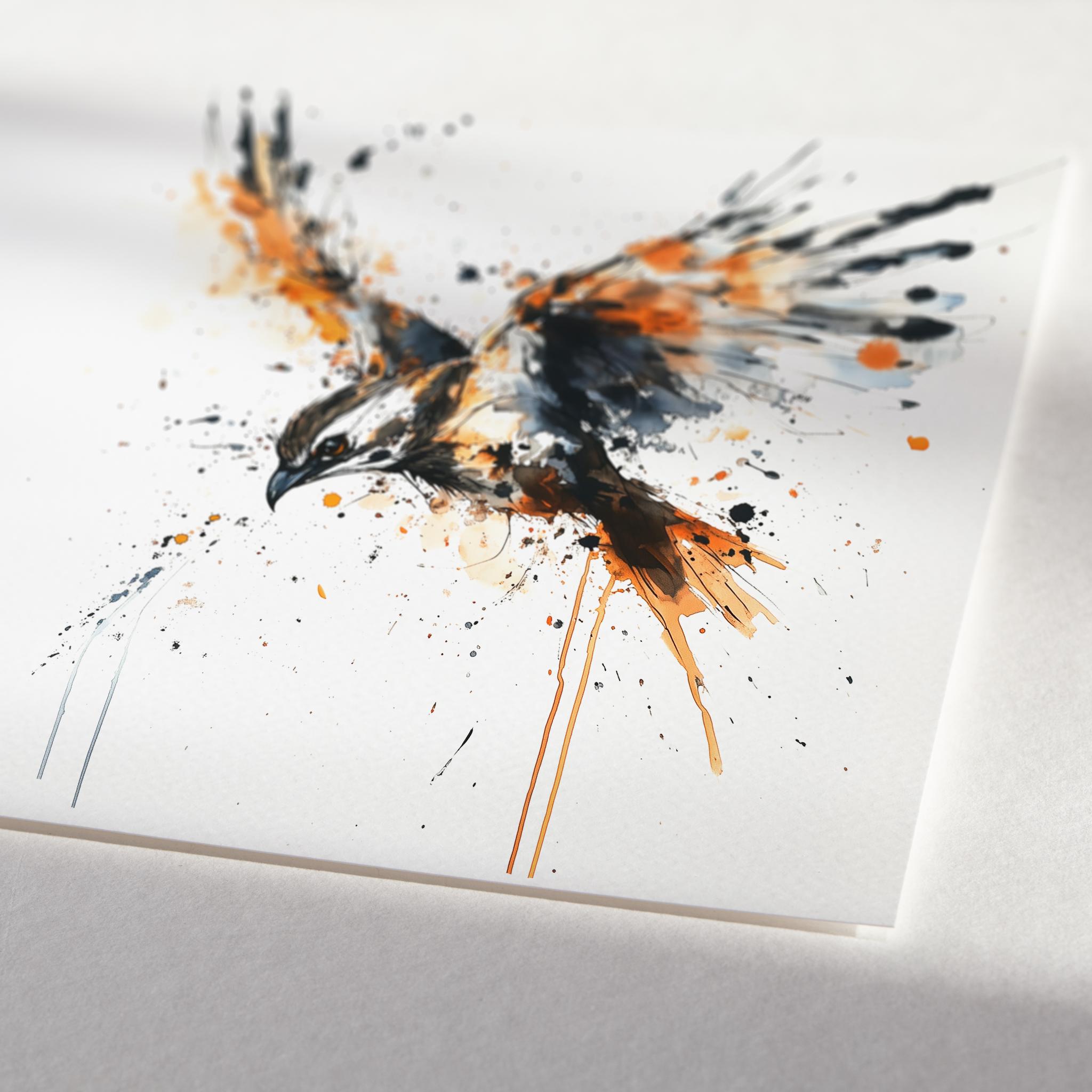 Kestrel Print - Hand signed Abstract Kestrel in Flight print on watercolour paper. Bold and expressive with lots of character, my paintings of a Bird of Prey are a firm favourite amongst nature lovers and bird watchers alike. My bird paintings have been published by the National Trust several times as gift cards and are for sale in cards shops nationwide through Museums and Galleries.