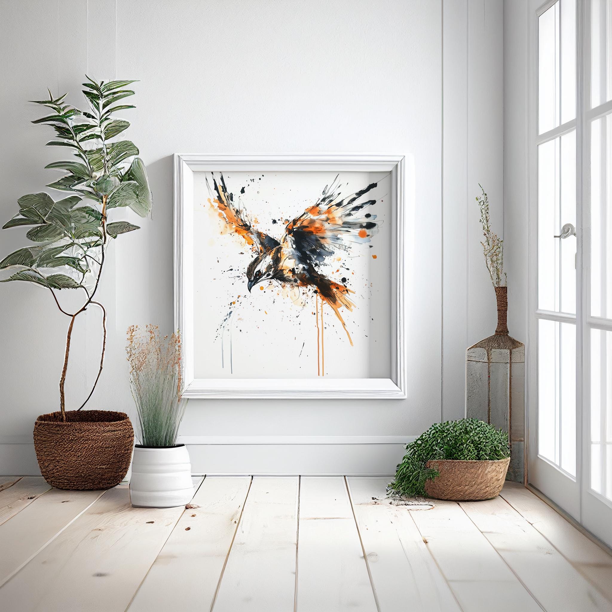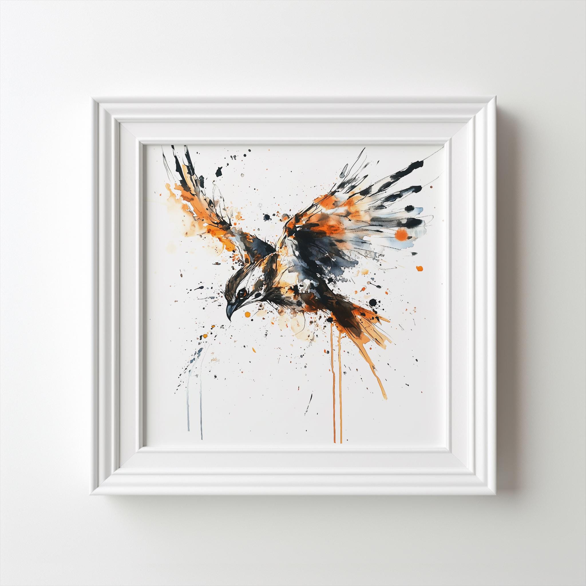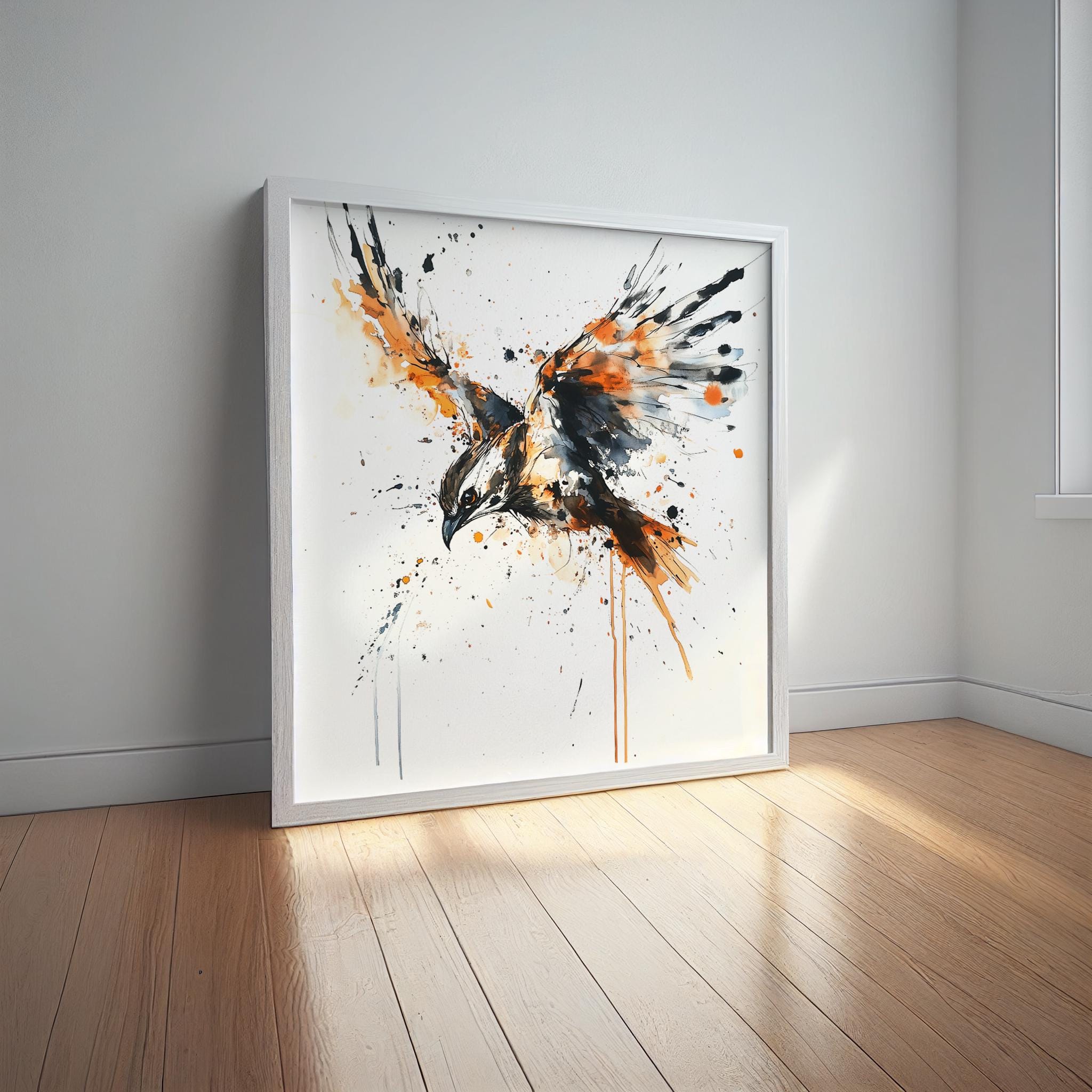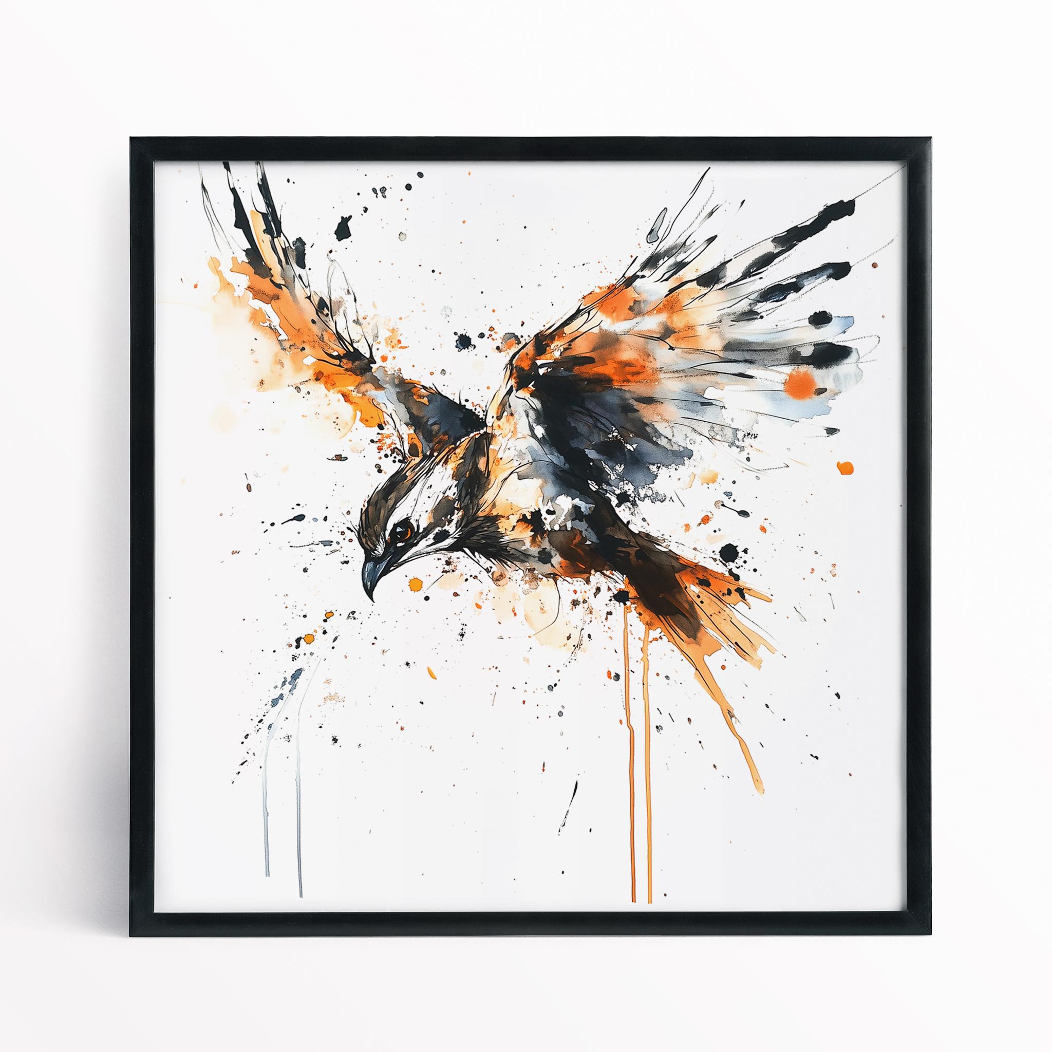 Kestrel Print - Hand signed Abstract Kestrel in Flight print on watercolour paper. Bold and expressive with lots of character, my paintings of a Bird of Prey are a firm favourite amongst nature lovers and bird watchers alike. My bird paintings have been published by the National Trust several times as gift cards and are for sale in cards shops nationwide through Museums and Galleries.