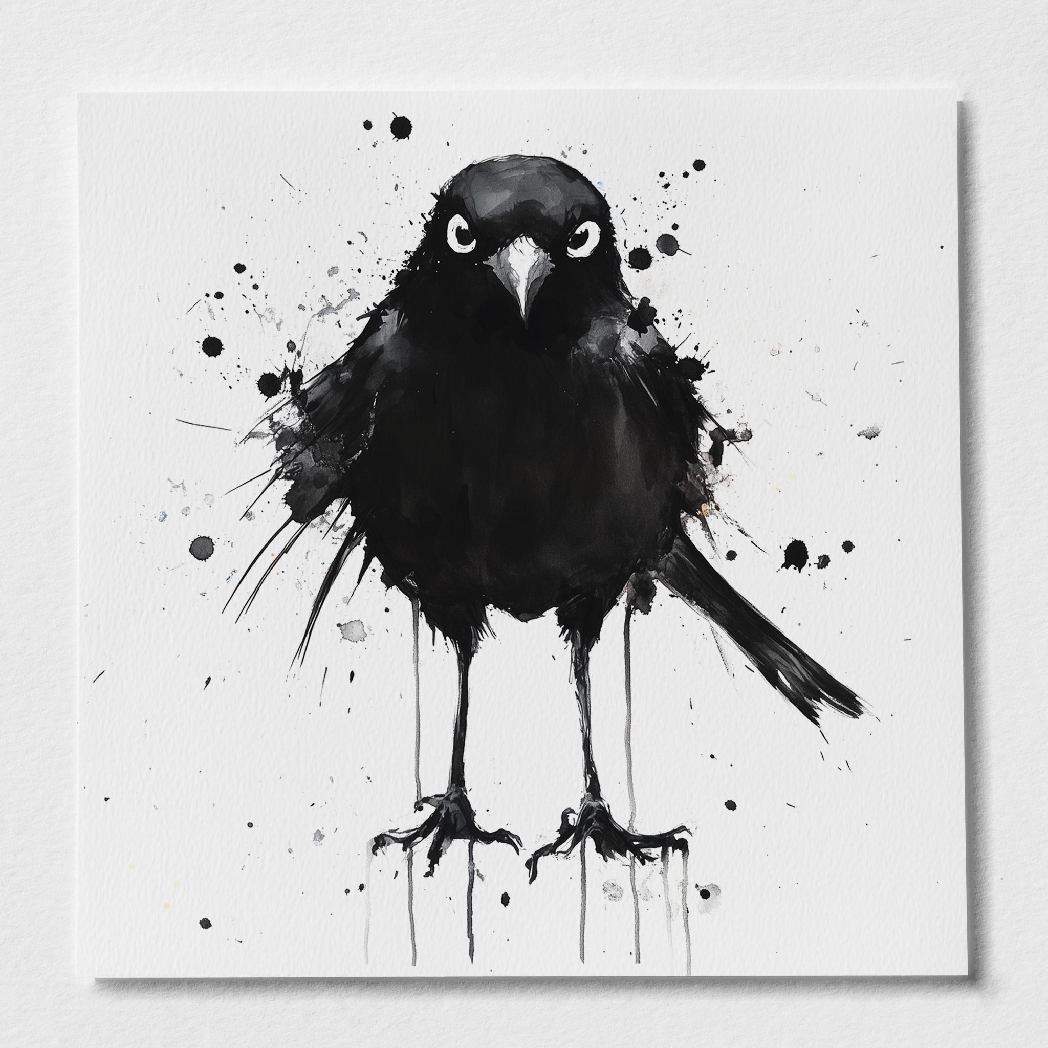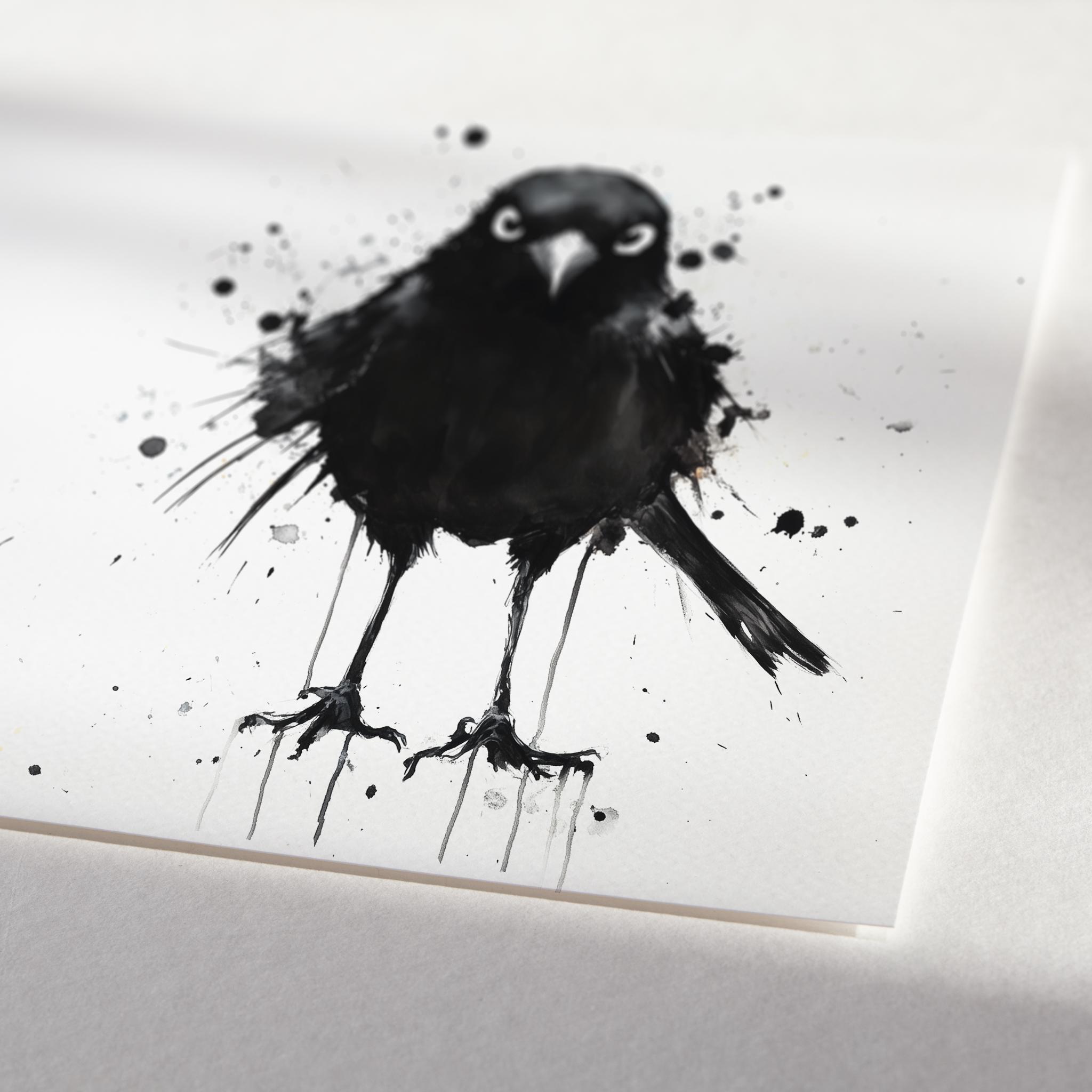 Black Bird Painting - Hand signed contemporary Black Bird print on watercolour paper. Bold and expressive with lots of character, my paintings of British garden birds are a firm favourite amongst nature lovers and bird watchers alike. My bird paintings have been published by the National Trust several times as gift cards and are for sale in cards shops nationwide through Museums and Galleries.